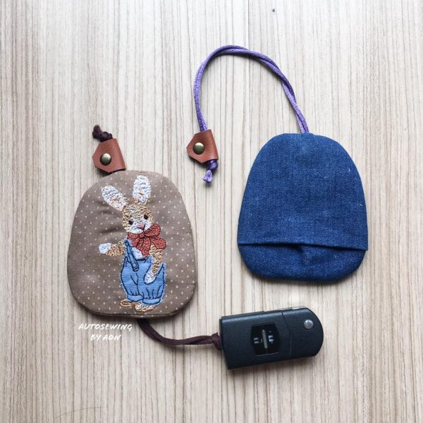 AutoSewing : A Bunny with a Bow Key Cover ( Hoop size 10×10 cm.)