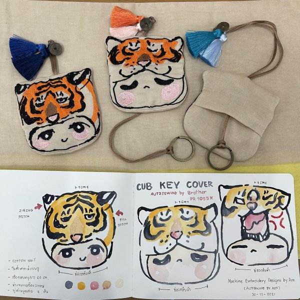 ไฟล์ปักแบบ AutoSewing สำหรับทำชิ้นงานที่เก็บกุญแจ รูปลูกเสือ 3 แบบ มีวีดีโอวิธีทำ