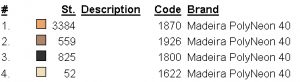 จำนวนสีปักใช้ 4 สี ตามภาพ (ไหมปักยี่ห้อมาดีร่า Madeira Polyneon #40)