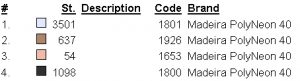 จำนวนสีปักใช้ 4 สี ตามภาพ (ไหมปักยี่ห้อมาดีร่า Madeira Polyneon #40)