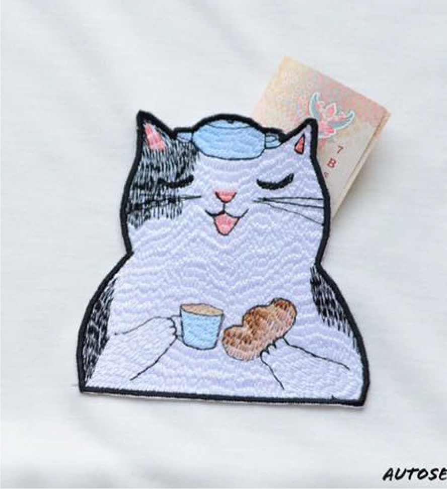 Cat with Breakfast Pocket( Hoop Size 10×10 cm. )