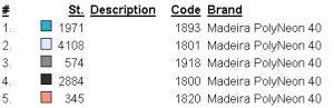 จำนวนสีปักใช้ 5 สี ตามภาพ (ไหมปักยี่ห้อมาดีร่า Madeira Polyneon #40)